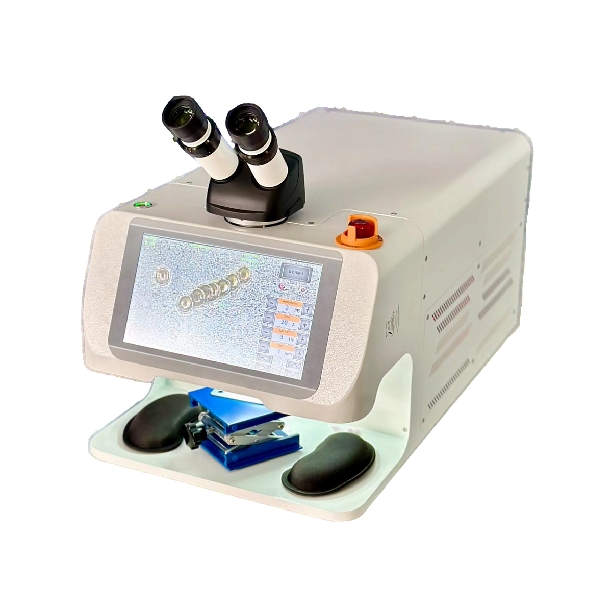 Наличие микроскопа 10х или же CMOS видеокамеры служит для удобства позиционирование изделия, что существенно облегчает выполнение точных работ. Таким образом, этот станок напольного расположения представляет собой полностью оборудованное рабочее место. Дополнительным удобством для оператора служат особые подставки для рук, выручающие, когда приходится долго выполнять выверенные действия.